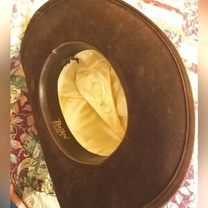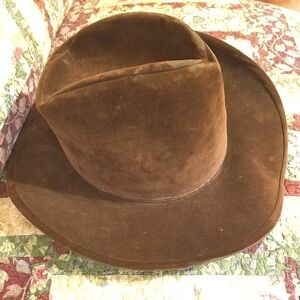 Beautiful Cowboy Hat Bailey U-Rollit Cattleman's Style Dark Brown Faux Suede, some wear on suede on top and missing decorative band, but otherwise in good condition