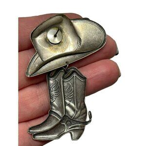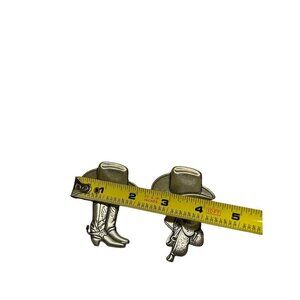Cowboy Hat Saddle Boots Silver tone Metal Earrings Dangle Drop Southwestern.