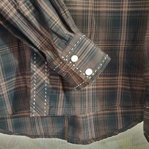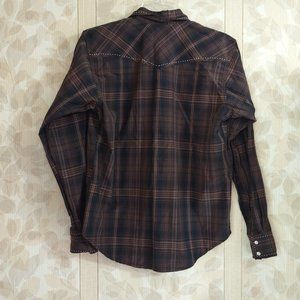 Cowboy Legend Brown Black Plaid Pearl Snap Button Rodeo Boys Western Shirt XL