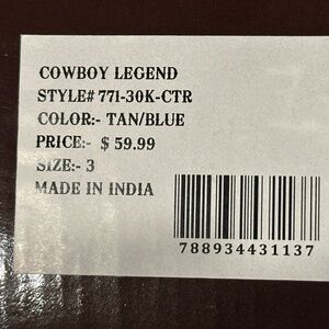 NWT - Never worn. Genuine leather boys cowboy boots. Additional insert to six down to 2.5 is included. New in box