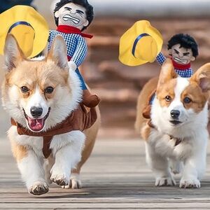 Dress your dog in this fun cowboy rider costume. Featuring a playful cowboy design in brown and yellow, it's perfect for adding some humor to your pet's wardrobe.