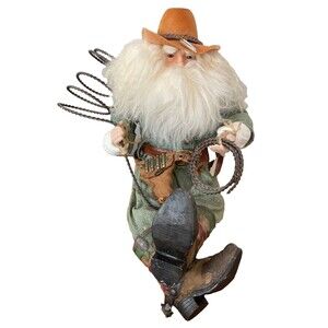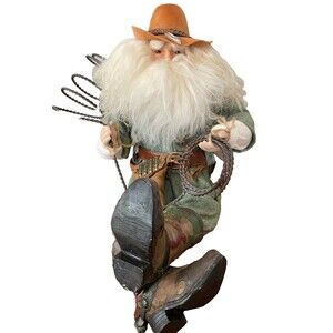 Cowboy Sheriff Santa Western Figurine Rancher Porcelain Doll Rodeo Lasso Boots