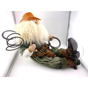 Bearded Cowboy Sheriff Santa Western Figure Rancher Porcelain Doll Rodeo Lasso Boots