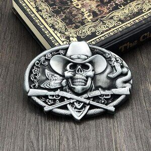 Cowboy Skull Belt Buckle Western Gothic Biker Style Snake Guns Rodeo Punk
