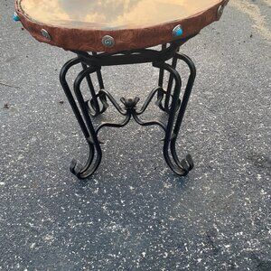 The sturdy metal scrollwork base not only provides rock-solid support but adds an elegant touch that elevates this piece from rustic to refined. Whether you're enjoying a quiet whiskey at the end of the day or entertaining guests, this tabl