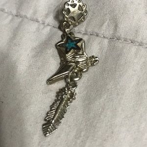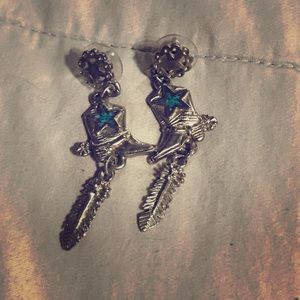 1 pair of dangle cowboy boot earrings with a turquoise star in the middle