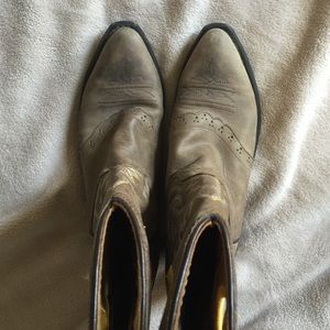 These cowboy boots have been used but they are in perfect condition! I upgraded to luchesse' and that is why I'm selling! They are a size 7 but fit more like a 7.5 bc that is my size and they fit me perfectly. MAKE AN OFFER