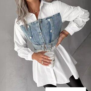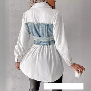 Button Down Denim Patchwork Shirt Top