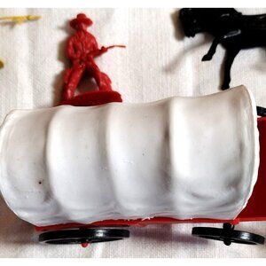 This 28 piece lot of colorful vintage plastic figurines has cowboys, Indians, stagecoach and horses. Perfect for collectors and enthusiasts of the old west.