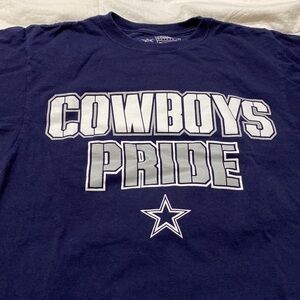 NFL Dallas cowboys t shirt front says Cowboys pride with logo back says 5 Super Bowl championships and a bunch of team statistics. This shirt is used and shows some signs of wear. Mens size small. I love to bundle!