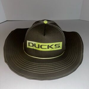 The Cowbucker Full Billed Organ Ducks Hat in gray and lime green will provide shade while displaying coolness! Has drawstring and snap back. Please see pictures!