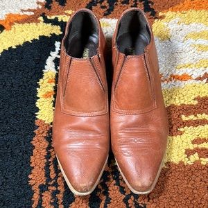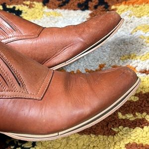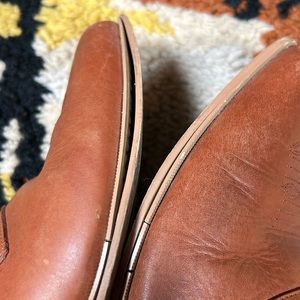 Perfectly worn in. Size is 9.5M. Marks and scuffs give them a killer distressed look! Soles starting to separate. Haven’t tried to mend. Still miles to go. All imperfections photographed and reflected in price.