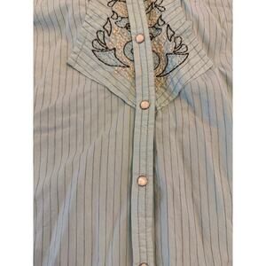 Cowgirl Coastal Country Pearl Button Y2K Western Embroiderd Teal Dress Size M