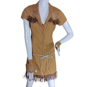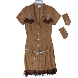 Cowgirl Custome Halloween Mini Dress Size Medium Cord Belt and Fingerless GLoves