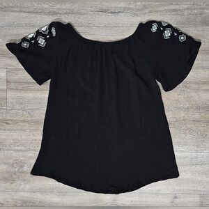 Stylish Cowgirl Hardware black top with detailed embroidery. Perfect for any occasion. In good pre-owned condition.