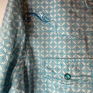 Cowgirl Hardware Blue Pearl Snap Shirt Embroidered Western Christian Cross