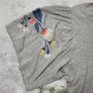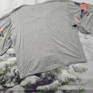 Cowgirl Legend Ruched Boho Embroidered Gray Bell Sleeve Top size Large