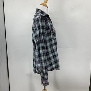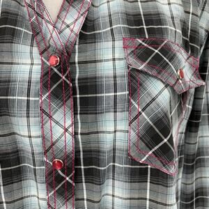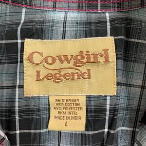 COWGIRL LEGEND SHIRT WOMEN L LARGE GRAY PINK LACE PANEL PLAID PEARL SNAP WESTERN