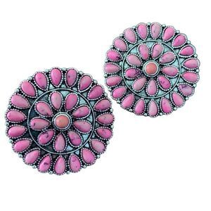 Cowgirl Pink Concho Cluster Earrings - Large Western Native American Style Studs