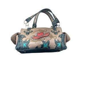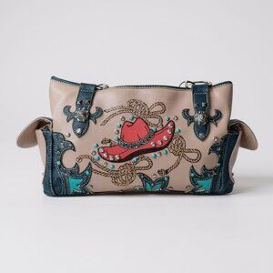 Cowgirl Trendy Purse Conceal Carry Teal And beige Rhinestone Bag