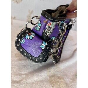 Cowgirl Trendy Womens Sugar Skull Day Of The Dead Purse Handbag Shoulder Purple