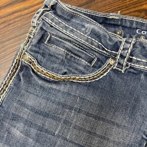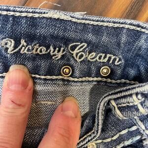 Cross design in embroidery and rhinestone on back pockets