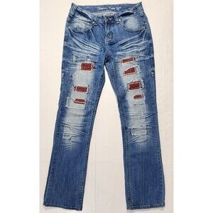 Cowgirl Tuff Patched Up Plaid Distressed Jeans Boot Cut Women's 28"/35"