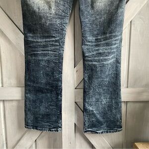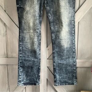 Stylish boot cut jeans. Faded black and gray design. Perfect for casual wear.