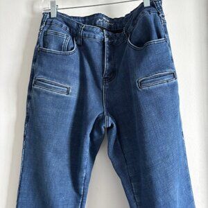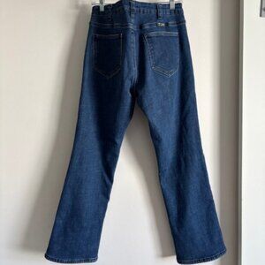Stylish boot cut jeans by Cowgirl Tuff. Classic dark blue color. Perfect for casual wear.