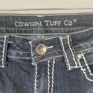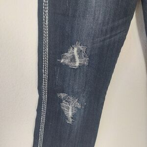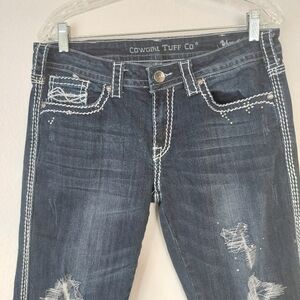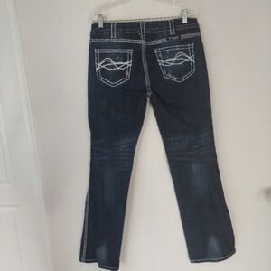 Cowgirl Tuff Worn & Torn Embroidered Indigo Bootcut Western Jeans Size 31. Great pre-owned condition