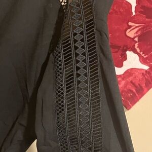 Cowgirl Up Black Western Oversized Crochet panels, Dressy Blouse, size Large