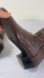 A pair of custom cowboy boots in a soft brown leather with a flex sole . These were made to be comfortable.. The soles are suade and they were made in Mexico. I'm a 7.5 and I have a M wide foot. I can't get my foot into the boot because they are made for a person with a narrow foot. If this is you, then you have found a great boot. These are hand crafted with a soft lighweight leather. They are in great condition and they have perfect stitching . they have a flex sole so they can be worn every day.