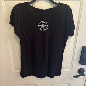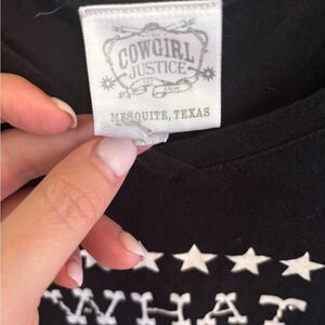 Cowgirl Justice “What Would Johnny Cash Do?” Black Graphic Tee with White Text