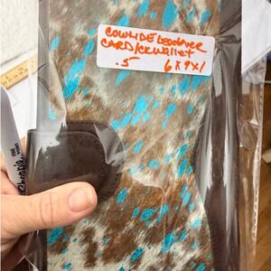This eye-catching cowhide leather checkbook wallet is perfect for adding a touch of western-boho flair to your everyday essentials. The turquoise and metallic hair-on-hide design is sure to turn heads.