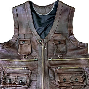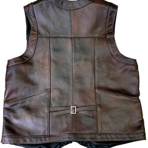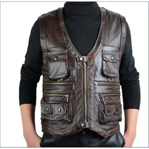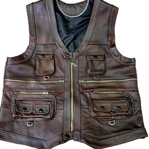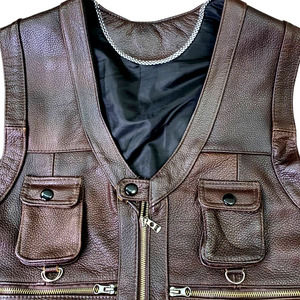 Cowhide Leather Motorcycle Photography Vest Waistcoat Jacket Men Size XL Brown