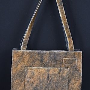 Cowhide Tote with two outside pockets. Leather lined with two inside pockets.