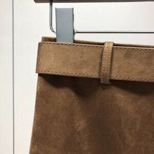 Cowhide Velvet Suede Belted Front Slit Midi Skirt