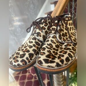 Cowhide ladies lace up shoe size 8 I have no idea what brand these shoes are. It says a number five in the shoe, but they are definitely a ladies size 8 very good condition with the exception of some gray spotting on the top. These may be high-end shoes, but I have no idea. Just a fun shoe.