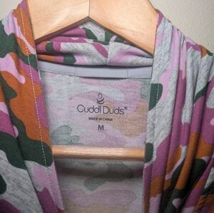 Cozy vibes radiate from this stylish cowl neck sweatshirt, featuring a delightful pink and green camouflage pattern that offers a unique twist on a classic design. The distinctive cowl neckline adds a touch of sophistication, while the button detail provides a subtle yet eye-catching accent. Soft, comfortable fabric ensures a relaxed fit, perfect for all-day wear. The long sleeves and relaxed silhouette make it an ideal choice for cooler days. This versatile sweatshirt is perfect for casual outings, weekend lounging, or cozy nights in.