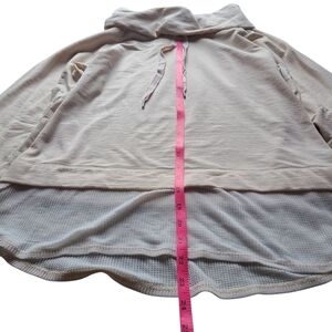 Cowl Neck Pullover Hoodie M Beige Mesh Hem High Low Sweatshirt Relaxed Fit Top
