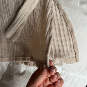 Cozy, lightweight sweater with a side slit and close fitting design that creates a flattering silhouette. NWoT, size sm/med fit