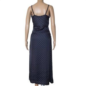 "Cowl Neck Slip Dress Satin Draped Slit Midi size 8 polka dot black white midi