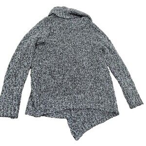 The Inner Circle Cowl Neck Sweater in black and white is a stylish and versatile piece for women's clothing. This sweater features a cowl neck, long sleeves, and decorative big buttons, making it perfect for casual, workwear, or business occasions. The chunky-knit fabric and heathered or marbled pattern add a modern and trendy touch to the overall design. With a regular fit and machine washable garment care, this sweater from the Inner Circle brand is a chic addition to any wardrobe, blending elements of biker, hippie, and gothic styles within a modern and hipster aesthetic.