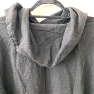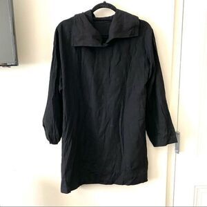 Black tunic. Large, long collar. Long sleeve. Oversized, long fit. Side zippers on both sides. Thick denim like material. No tags - not sure what brand or the size. Fits like a medium.