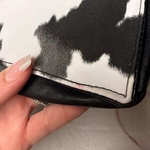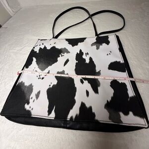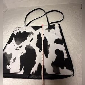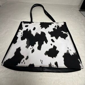 Stylish black and white tote bag with a unique pattern. Perfect for everyday use.