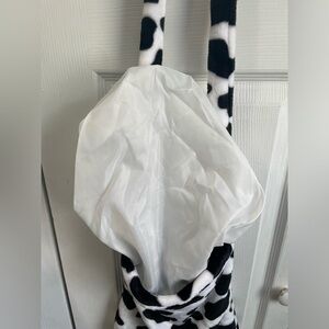 Cowprint crossbody fuzzy purse . Has a very thin liner but very clean