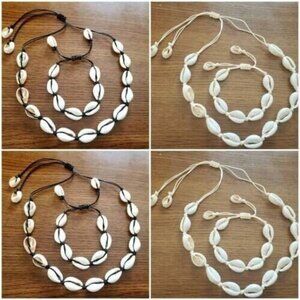 Cowrie Shell Waxed Cord Bead Choker And Bracelet Set Crème Cord