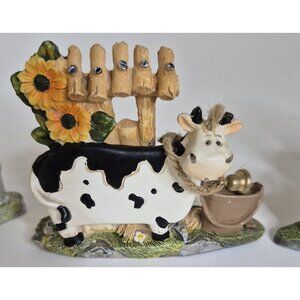 Cow's with Milk Bucket And Bell Resin Figurines 3 Count 4"×3"