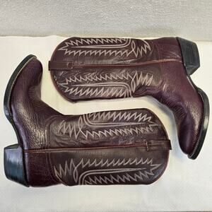 Cowtown Boots Handmade Cowboy Boots Mens 9D Burgundy Leather Western Mexico. Ranchwear, Pointed Toe, Classic, Durable