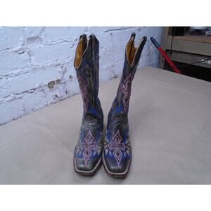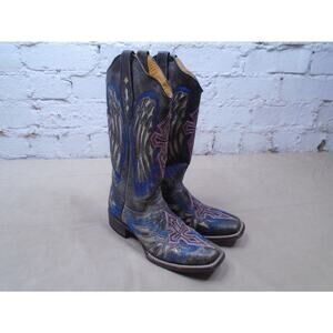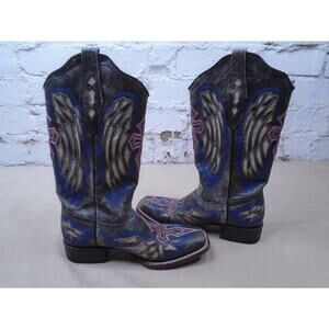 Cowtown Womens Black Bling Sparkle Cross and Wings Square Toe Boot Sz 7.5